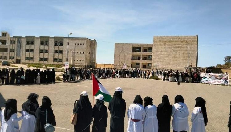 نظم أكاديميو وطلاب كلية التربية والعلوم التطبيقية بمحافظة ريمة اليوم السبت، وقفة احتجاجية تنديداً بالعدوان الأمريكي – البريطاني على اليمن وتضامناً مع الشعب الفلسطيني.