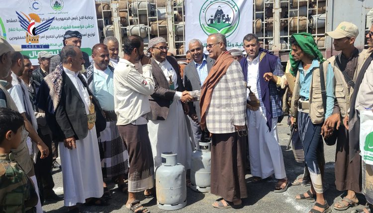 حيث يتم التوزيع 18 ألفاً و27 أسطوانة غاز منزلي لأسر الشهداء والمفقودين بالمحافظة مجاناً، بالتعاون مع الشركة اليمنية للغاز.