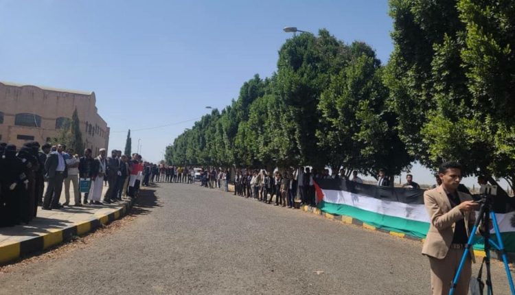نظم منتسبو كلية الحاسبات والمعلوماتية بجامعة ذمار، اليوم، وقفة تضامنية مع الشعب الفلسطيني .