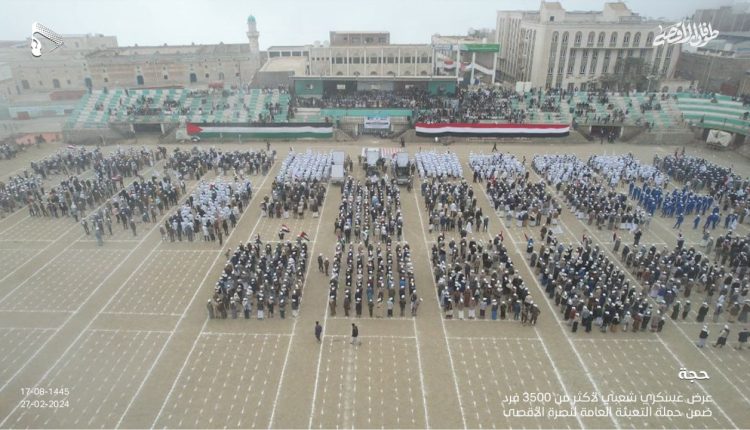 شهد مركز محافظة حجة ،اليوم، العرض الشعبي لخريجي الدفعة الأولى من الدورات العسكرية المفتوحة ضمن حملة “طوفان الأقصى” ومعركة الفتح الموعود والجهاد المقدس.