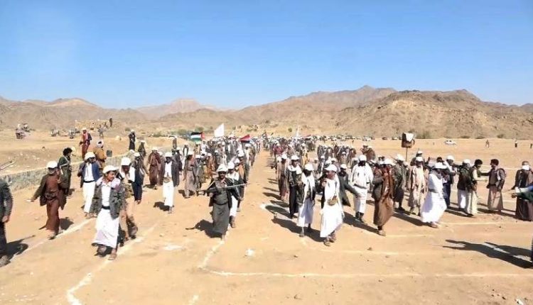 وأكد مشايخ ووجهاء المديرية، أن هذا العرض الرمزي الشعبي والشبابي ينطلق من المواقف العملية للشعب اليمني والقيادة والقوات المسلحة تجاه نصرة المقاومة الفلسطينية، مقابل تنصل حكام الدول العربية عن القضية الفلسطينية ومواقف التطبيع.