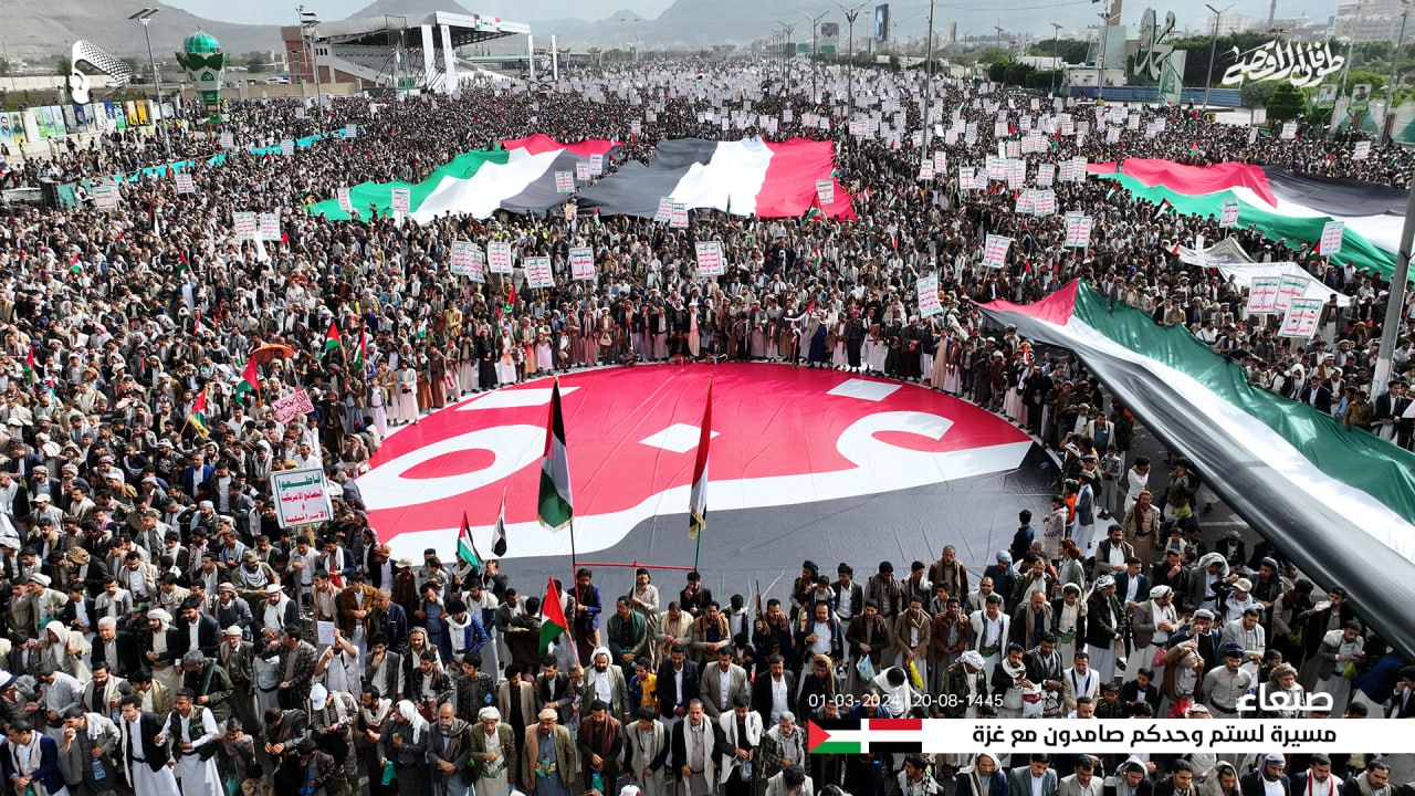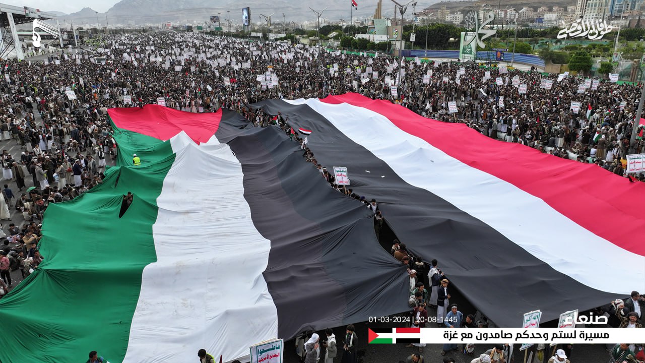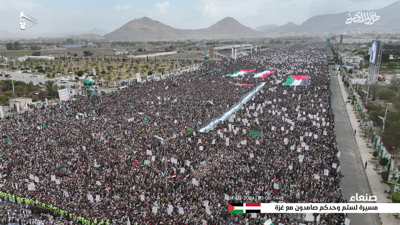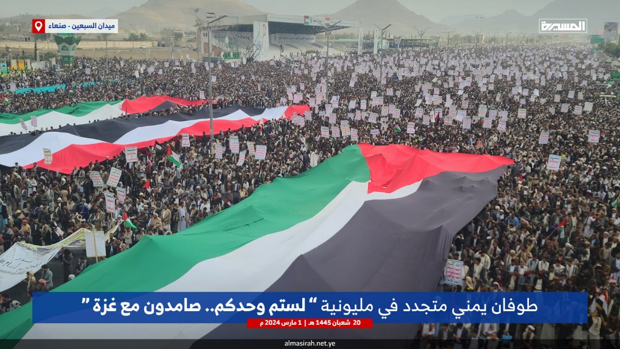 صور جوية| بمعنويات عالية تناطح الجبال وتتحدى ثلاثي الشر.. حشود مليونية في مسيرة “لستم وحدكم.. صامدون مع غزة” في ميدان السبعين بالعاصمة صنعاء 20-08-1445هـ – 01-03-2024م