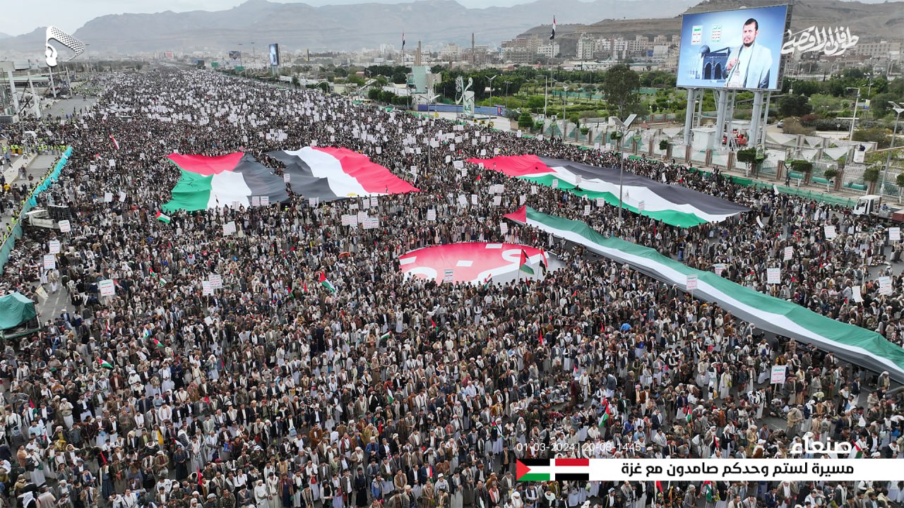 بمعنويات عالية تناطح الجبال وتتحدى ثلاثي الشر.. شاهد الحشود المليونية في مسيرة “لستم وحدكم.. صامدون مع غزة” في ميدان السبعين بالعاصمة صنعاء (صور جوية)