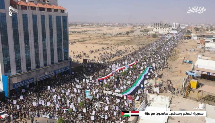 12 مسيرة جماهيرية في صعدة تحت شعار “لستم وحدكم صامدون مع غزة” (تفاصيل+صور)