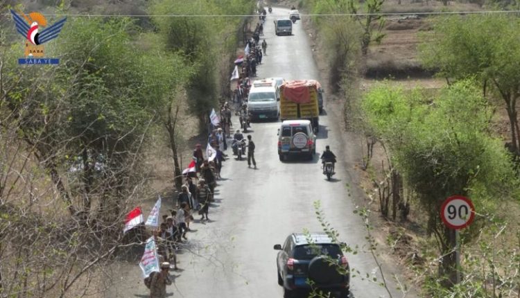 وخلال المسير الذي رفعا فيه العلمين اليمني والفلسطيني، ردد المشاركون الهتافات الداعمة للشعب الفلسطيني ومقاومته الباسلة، منددين باستمرار المجازر الذي يرتكبها الكيان الصهيوني بحق أبناء غزة وفلسطين، بدعم من رأس الشر أمريكا.