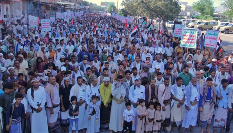 وخلال المسيرات التي تقدمها المحافظ محمد قحيم ووكيل أول المحافظة أحمد البشري والوكلاء، رفع المشاركون الأعلام اليمنية والفلسطينية، مؤكدين الاستمرار في تنظيم المسيرات التضامنية مع الأشقاء الفلسطينيين في ظل التخاذل والصمت الدولي المطبق تجاه ما يرتكبه الكيان الصهيوني من حرب إبادة في قطاع غزة.