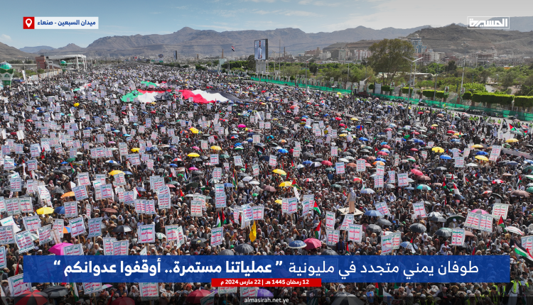 ففي العاصمة صنعاء خرج الطوفان البشري المليوني الأضخم على مستوى اليمن وجميع الدول في العالم تحت شعار “عملياتنا مستمرة.. أوقفوا عدوانكم”في المسيرة المركزية،