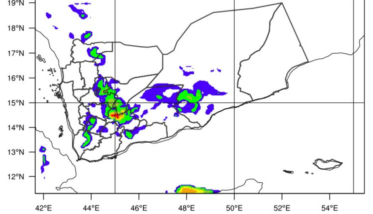 أمطار متفاوتة الشدة يصحبها الرعد على محافظات ( إب، تعز، الضالع، لحج، أبين ، البيضاء، شبوة، مارب، هضبة حضرموت والمهرة) كما يتوقع أن تشمل ايضاً السواحل الجنوبية والشرقية والمناطق الداخلية المحاذية لها.