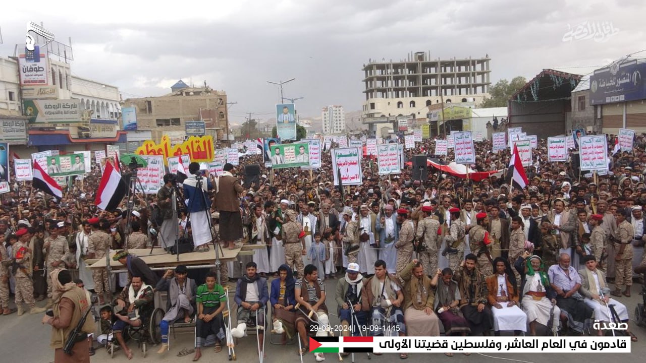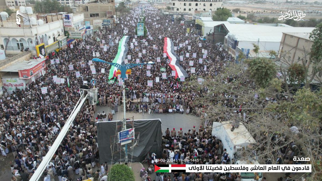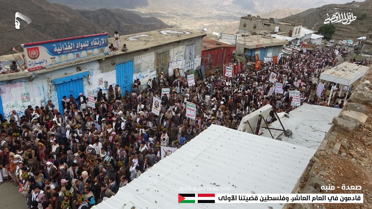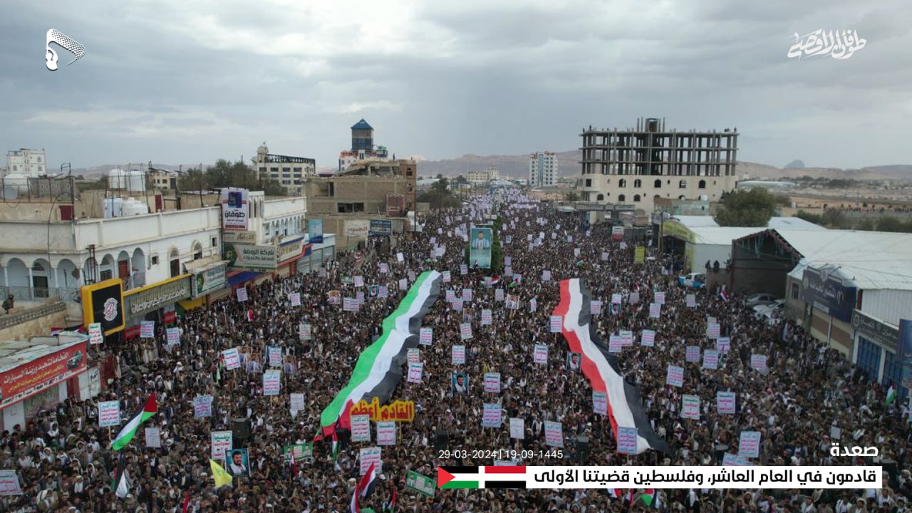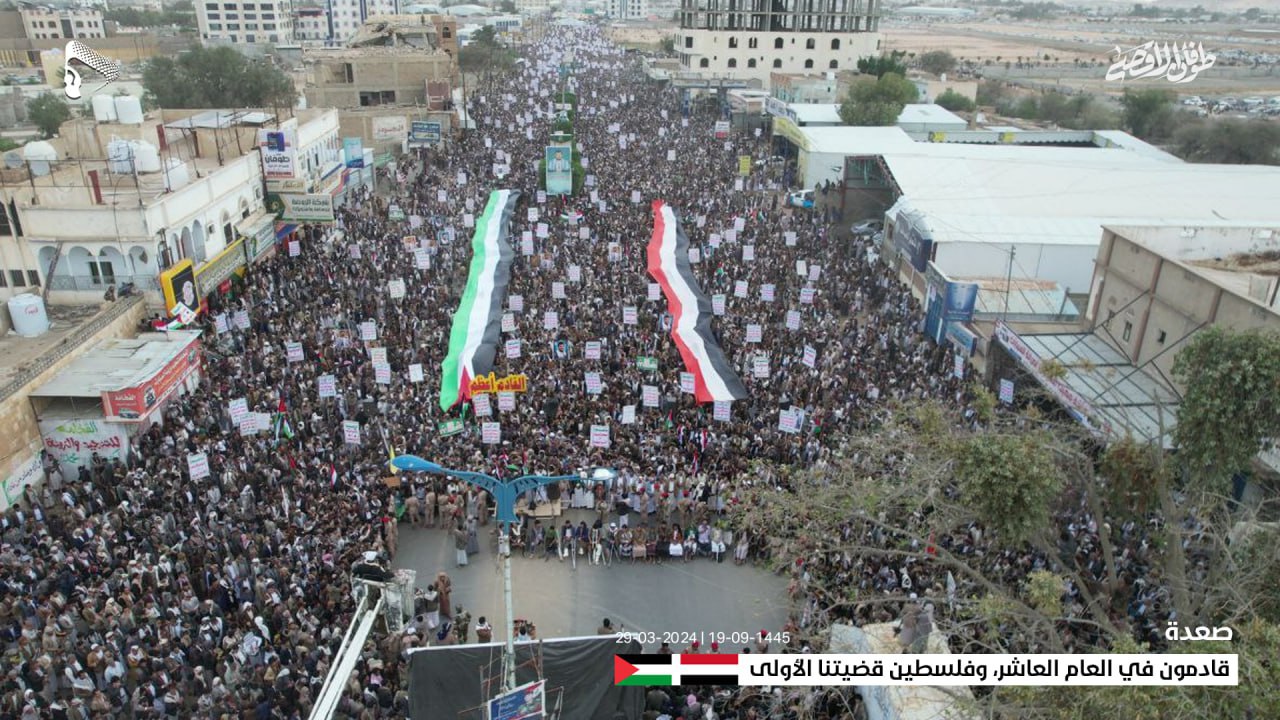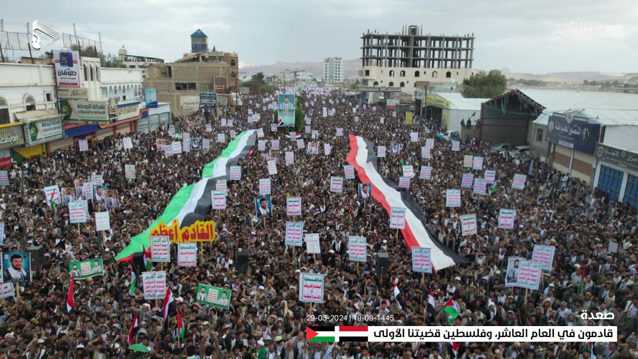 خرجت بمحافظة صعدة اليوم 19 مسيرة جماهيرية حاشدة في مركز المحافظة والمديريات تحت شعار ” قادمون في العام العاشر وفلسطين قضيتنا الأولى “.
