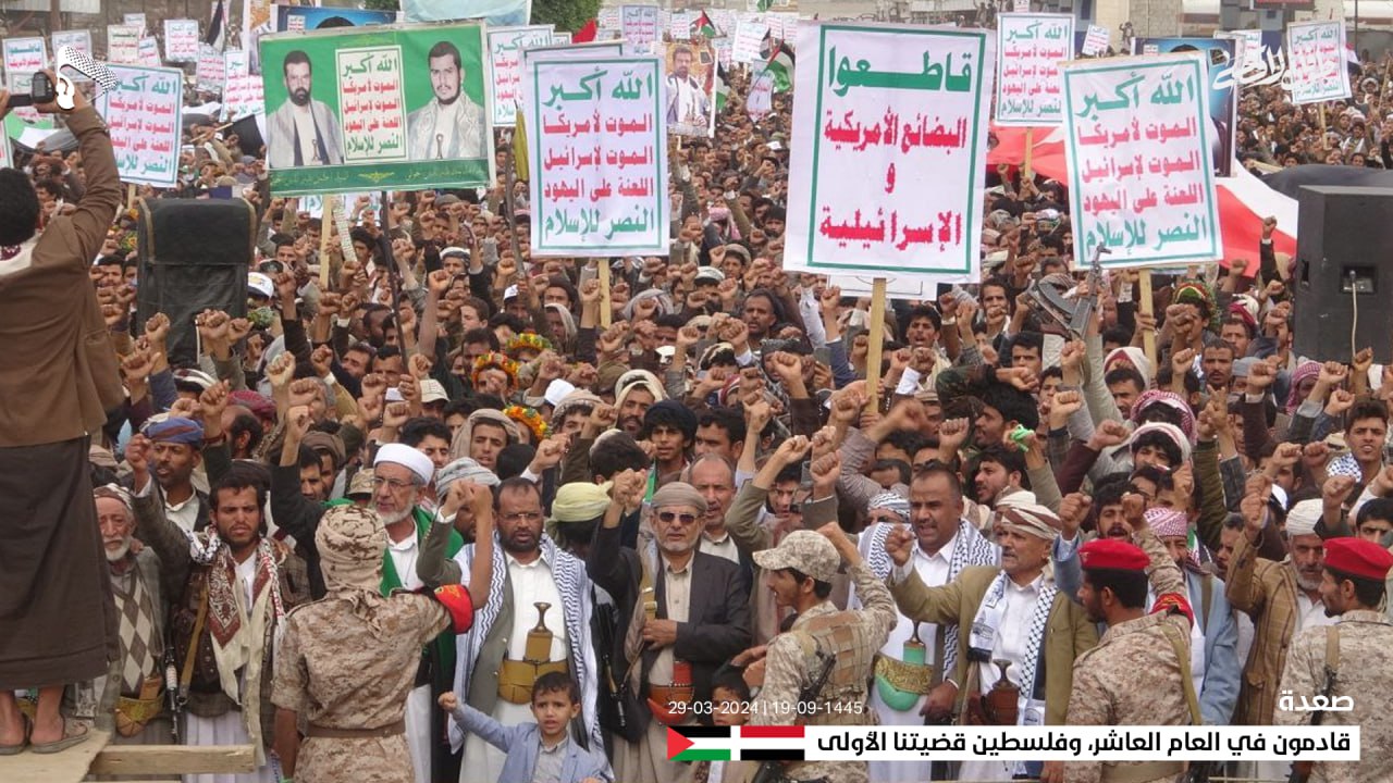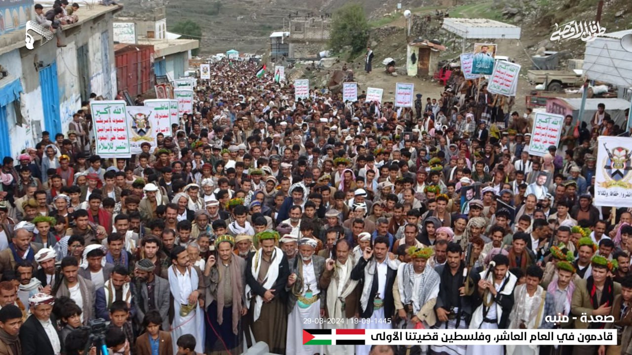 بيان المسيرات التي خرجت بمحافظة صعدة أعلن الثبات والاستمرار في الموقف المبدئي المساند للشعب الفلسطيني ، مؤكداً أن الخروج المليوني في كل الساحات عمل جهادي وتحرك مسؤول واستجابة لنداء الله تعالى .