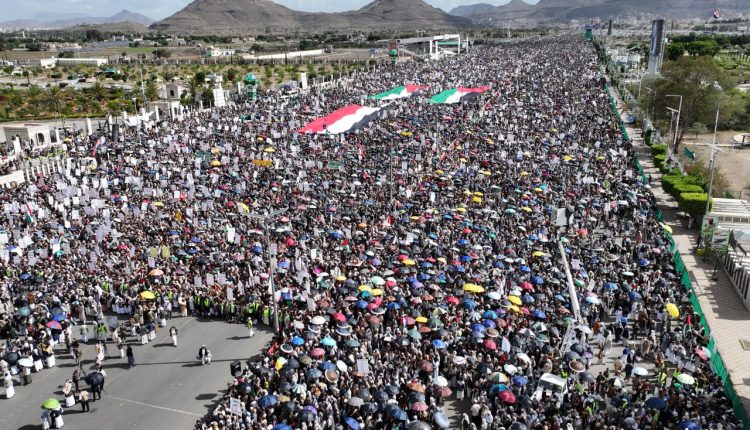 وأكد بيان صادر عن المسيرة، استمرار الشعب اليمني في الخروج المليوني إلى كل الساحات إيمانا منه بأنه عمل جهادي وتحرك مسؤول واستجابة لنداء الله تعالى والضمير الإنساني.