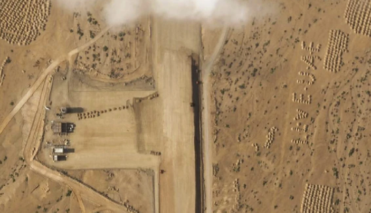على طول تلك النقطة الأوسع يقع بناء مهبط الطائرات. وأظهرت صور الأقمار الصناعية من Planet Labs PBC التي حللتها وكالة أسوشييتد برس شاحنات ومركبات أخرى وهي تقوم بتسوية المدرج في 11 مارس، وتحول جزءًا من معالمه الرملية إلى اللون البني الداكن.