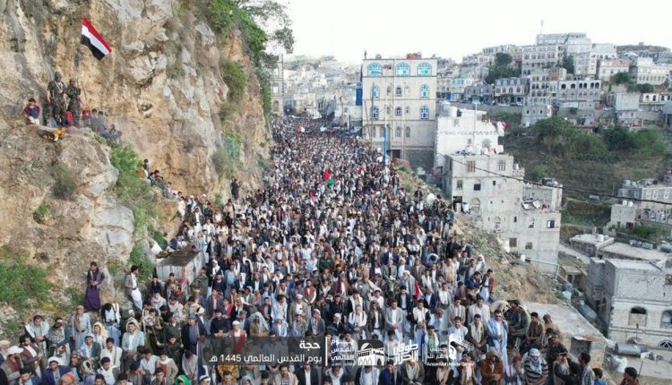 شهدت محافظة حجة، اليوم، مسيرات حاشدة في 23 ساحة بمركز المحافظة والمديريات بيوم القدس العالمي.