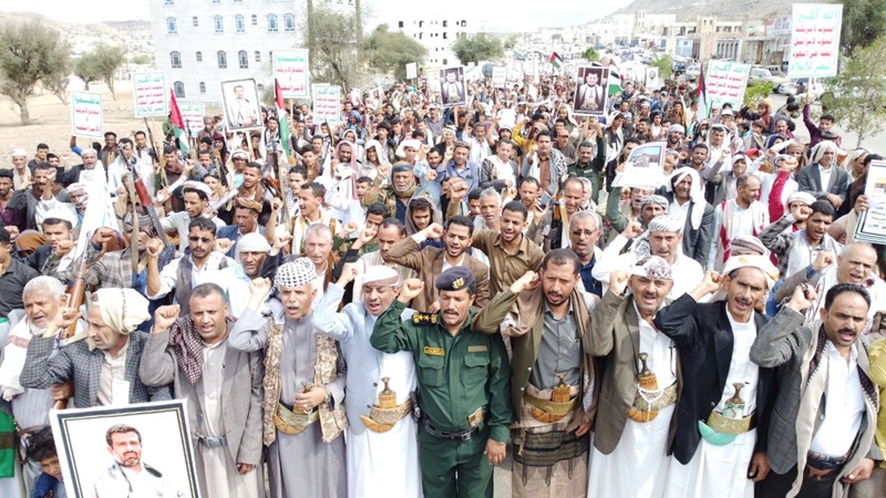 وأكد بيان المسيرات أن العدوان الأمريكي – البريطاني الأرعن على اليمن لن يزيد أبناء الشعب اليمني إلا صموداً وثباتاً وإصراراً على موقفه في نصرة الشعب الفلسطيني واستعدادا لمواجهة عدوانهم وغطرستهم، مستعينين بالله ومتوكلين عليه واثقين بنصره وتأييده.