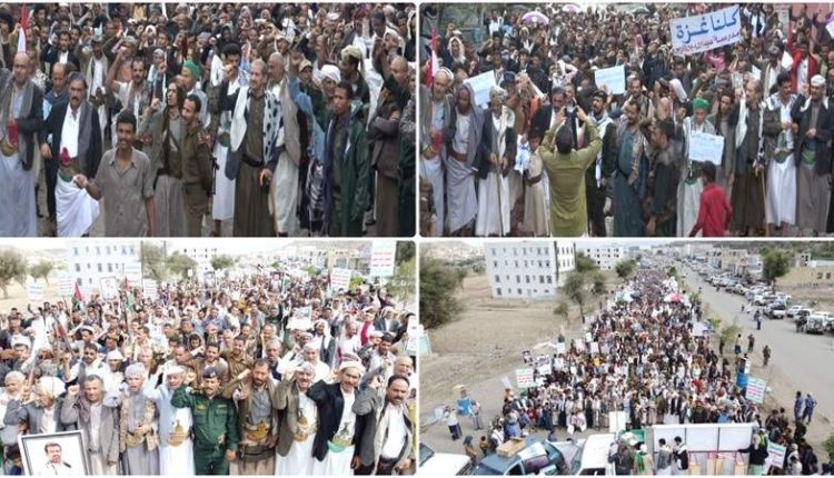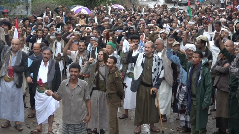حيث احتشد أبناء محافظة تعز في ساحات “الرسول الأعظم بمديرية التعزية، والمدينة السكنية ببرح مديرية مقبنة، المربع الشرقي بخدير، ومركزا المديرية في شرعب السلام وشرعب الرونة.