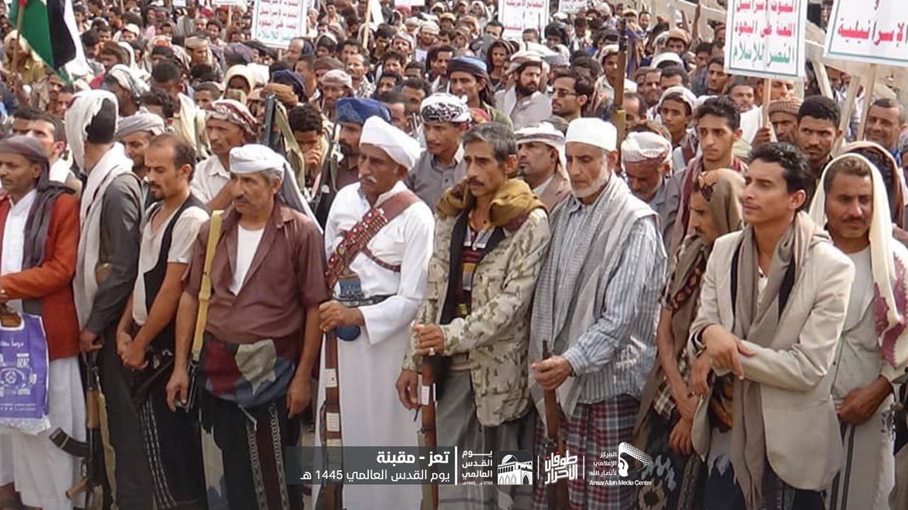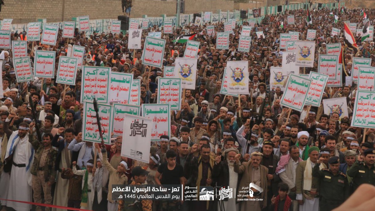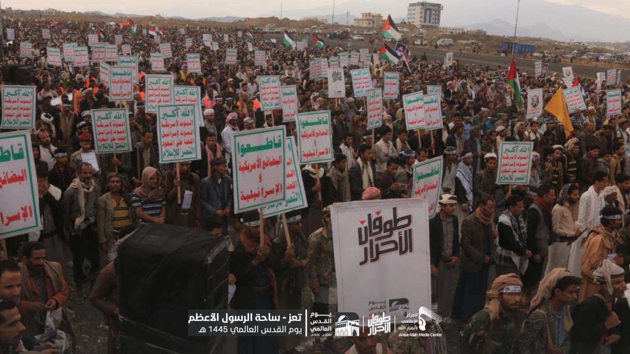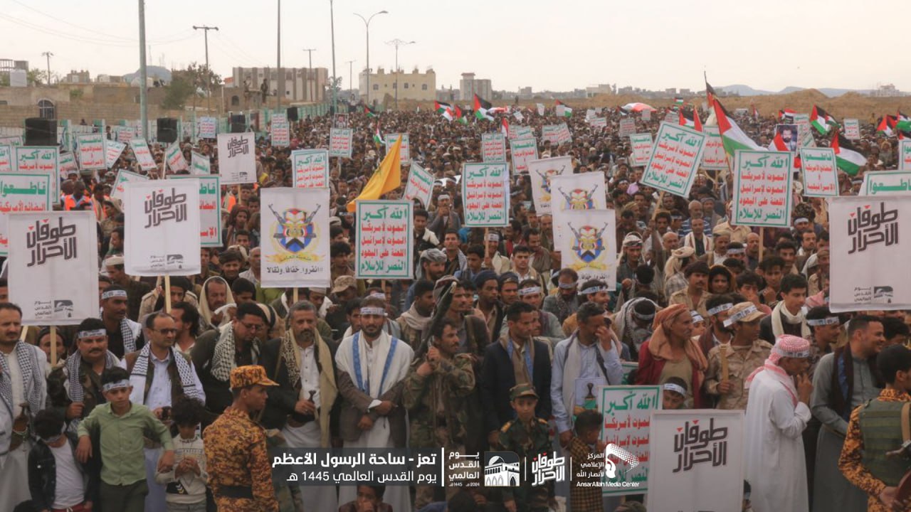 واعتبر أبناء تعز يوم القدس العالمي، آخر جمعة من شهر رمضان، مناسبة إسلامية مهمة تعزّز في النفوس الارتباط بالقدس ويوماً محورياً لاستنهاض الشعوب الإسلامية ورفع وعيها للإحساس بالمسؤولية تجاه قضيتها المركزية.