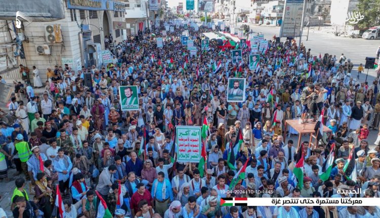 تحت شعار “معركتنا مستمرة حتى تنتصر غزة”.. حشود جماهيرية كبرى في 21 ساحة بالحديدة تضامناً مع الشعب الفلسطيني ومقاومته الباسلة