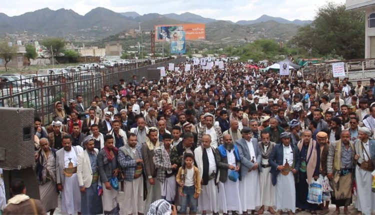 مسيرات جماهيرية حاشدة في إب تضامناً مع الشعب الفلسطيني وتأكيداً على الاستعداد للنفير في مواجهة العدوان الأمريكي البريطاني
