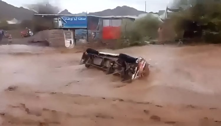 وقالت مصادر إن أمطارا غزيرة هطلت على مديرية العرش تسببت في سيول جرفت العديد من المزارع والسيارات في منطقة حبابة .