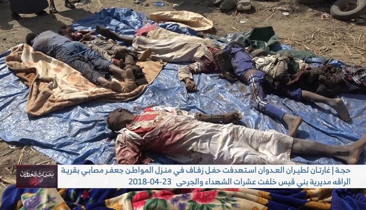 23 إبريل 2018.. 88 شهيداً وجريحاً في جريمة إبادة جماعية لعرس بني قيس بحجّـة: