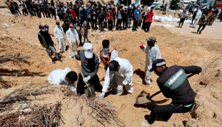 إنتشال 342 جثة لشهداء من المقبرة الجماعية بمجمع ناصر الطبي جنوبي قطاع غزة