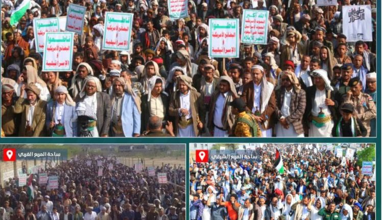 5 مسيرات جماهيرية حاشدة في تعز تطالب بفتح ممرات للمشاركة في مواجهة العدو الصهيوني