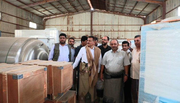 سلم أمين عام المجلس الأعلى لإدارة وتنسيق الشؤون الإنسانية والتعاون الدولي، إبراهيم الحملي، اليوم بمحافظة الحديدة، معدات وتجهيزات مصنع الألبان ومراكز التجميع، للقائم بأعمال رئيس الاتحاد التعاوني الزراعي مبارك القيلي.