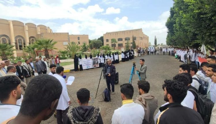 نظم طلاب جامعة ذمار وقفتين احتجاجيتين تنديداً باستمرار المجازر الصهيونية في قطاع غزة؛ وتضامناً مع طلاب الجامعات الأمريكية والأوروبية، الذين يتعرضون للقمع، جراء مواقفهم المنددة بالمجازر التي تُرتكب ضد الفلسطينيين.