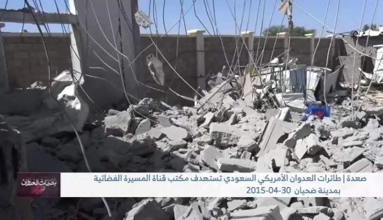 30أبريل 2015.. غارات العدوان تستهدف مكتب قناة المسيرة بصعدة