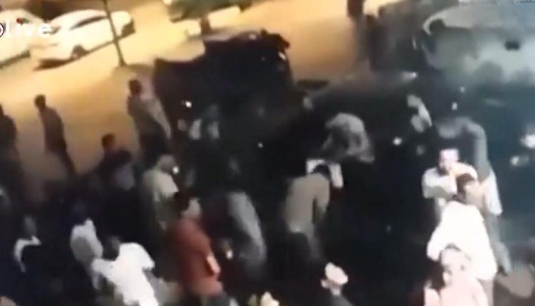 وأظهر مقطع الفيديو وقوف مجموعة من الأشخاص أسفل العمارة في محاولة لالتقاط السيدة قبل سقوطها على الأرض.