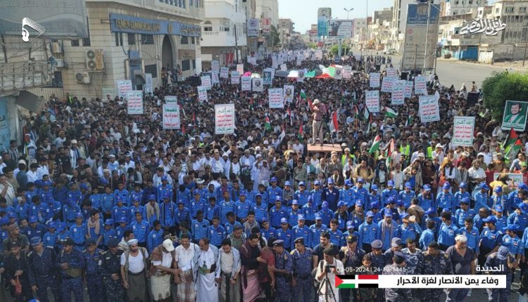 وجدّدت حشود مسيرات الحديدة، التأكيد على موقف التضامن تجاه نصرة الشعب الفلسطيني، انطلاقاً من المبدأ الديني والأخلاقي والإنساني، مقابل صمت وسكوت وخنوع عربي إسلامي، لم تتحرك فيهم رابطة الدين والأخوة ولا حتى مشاعرهم الإنسانية تجاه الجرائم الصهيونية.