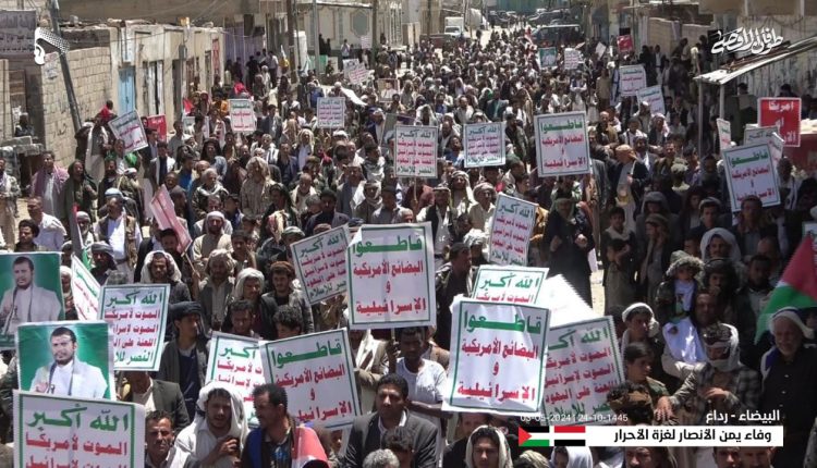 صور بالصور| مسيرات ووقفات بالبيضاء تحت شعار “وفاء يمن الأنصار.. لغزة الأحرار” يمانيون/ صور شاهد| مسيرات ووقفات جماهيرية في البيضاء تؤكد الاستعداد والجهوزية لمواجهة العدو الأمريكي الصهيوني # مسيرات جماهيرية#مسيرة "وفاء يمن الأنصار لغزة الأحرار"#نصرة لغزةالبيضاء Share