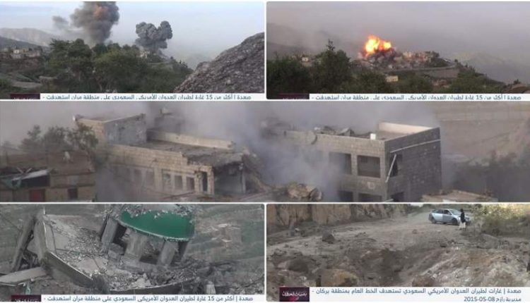 8 مايو 2015.. غارات العدوان تستهدف الطريق العام بصعدة للمرة الخامسة: