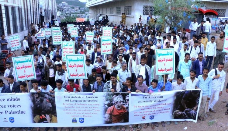 تعز.. وقفة لطلاب ومنتسبي الجامعات تأييدا للحراك الطلابي بالجامعات الأمريكية والأوروبية