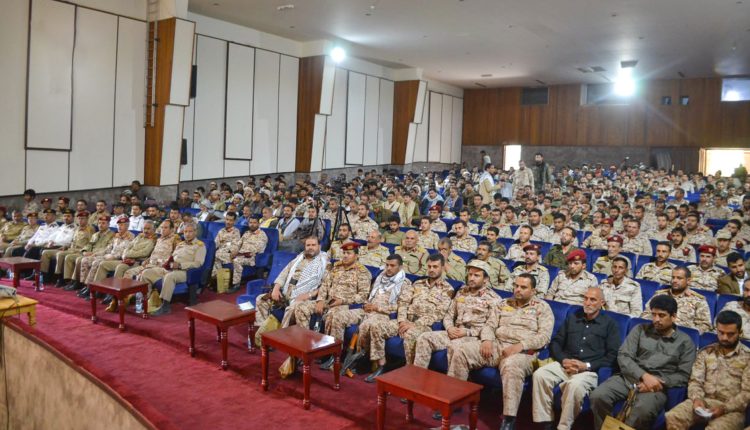 وفي الفعالية التي حضرها قيادات عسكرية أشار رئيس شعبة شؤون العاملين بالهيئة العقيد حمزة صلاح الدين ، إلى أن الصرخة التي انطلقت من مدرسة الإمام الهادي في جبل مران واطلقها الشهيد القائد السيد حسين بدر الدين الحوثي مثلت الهتاف السامي لكل حر وسلاح الحق للمؤمنين والمستضعفين في مواجهة الطغاة والمستكبرين.