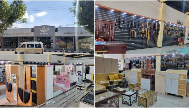 ويحتوى المعرض الذي تم افتتاحه بسوق الحصبة أحد أهم الأسواق في العاصمة صنعاء على العديد من الأجنحة التي ضمت الكنب وغرف النوم والطاولات والمشغولات اليدوية بأقسامها المختلفة الجلدية والقماشية بالإضافة الى العطور والبخور والملابس