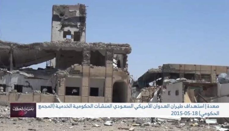 كما استهدف طيران العدوان السعوديّ الأمريكي في اليوم ذاته 18 مايو من العام 2015م، المجمع الحكومي، والمنشآت الخدمية في محافظة صعدة، أسفرت عن تدمير شبه كلي للبنايات، وملحقاتها، وحالة من الفزع والخوف في نفوس المدنيين المارة في المدينة، وحرمانهم من خدماتها المقدمة.
