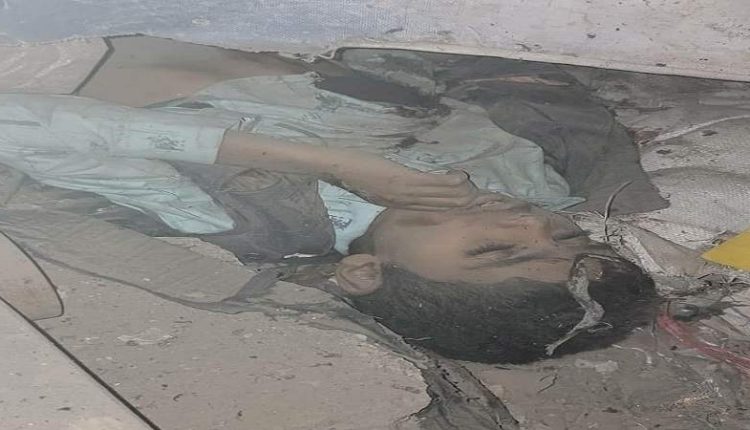 وإصابة الطفل يونس عبدالله احمد منصر 14عاما بشظايا في أنحاء الجسم.
