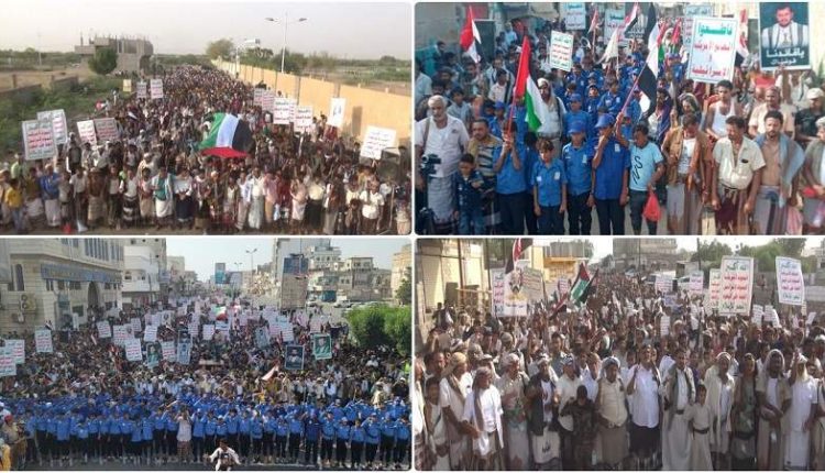 تعز .. مسيرات كبرى بعنوان “مع غزة.. ثبات الموقف واستمرارية الجهاد”