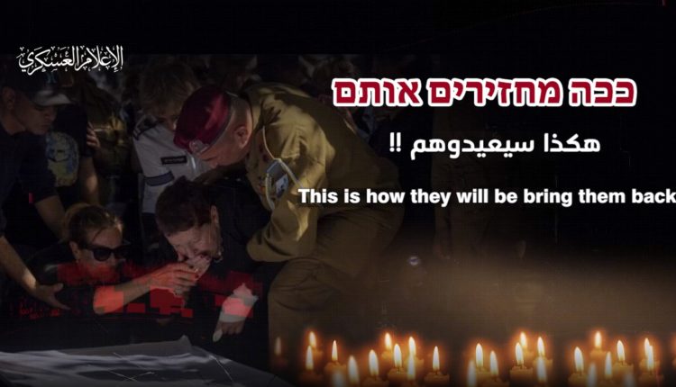 وأوردت “القسّام”، بعد ذلك، عبارة موجّهةً إلى عائلات الأسرى، قالت فيها: “هكذا يقتل نتنياهو وجيشه ومجلس الحرب” الأسرى، لتُتبع هذه العبارة بصور لأسرى إسرائيليين قُتلوا من جراء القصف الإسرائيلي المتواصل على قطاع غزة.