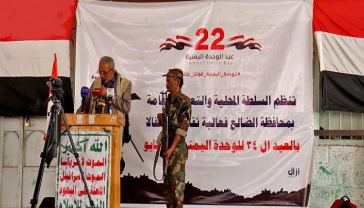 وفي الحفل أكد القائم بأعمال محافظ الضالع عبد اللطيف الشغدري، أن الوحدة اليمنية باقية في ظل تماسك أبناء الشعب اليمني والتفافهم حول القيادة الحكيمة ممثلة بقائد الثورة السيد عبدالملك بدر الدين الحوثي.