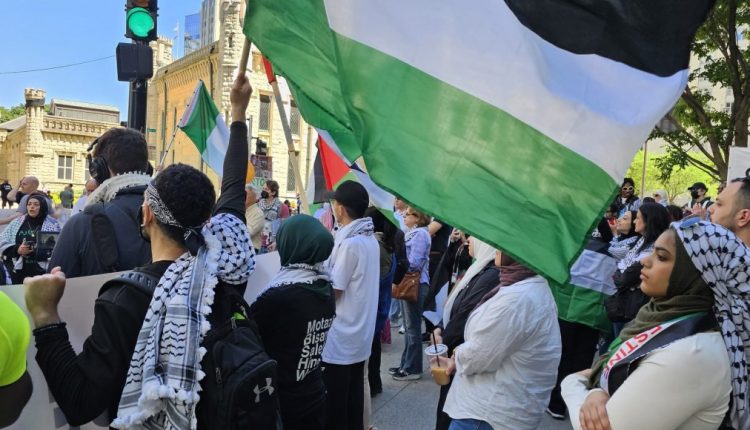 تظاهرة وسط مدينة شيكاغو الأمريكية تطالب بوقف الإبادة الجماعية في بغزة
