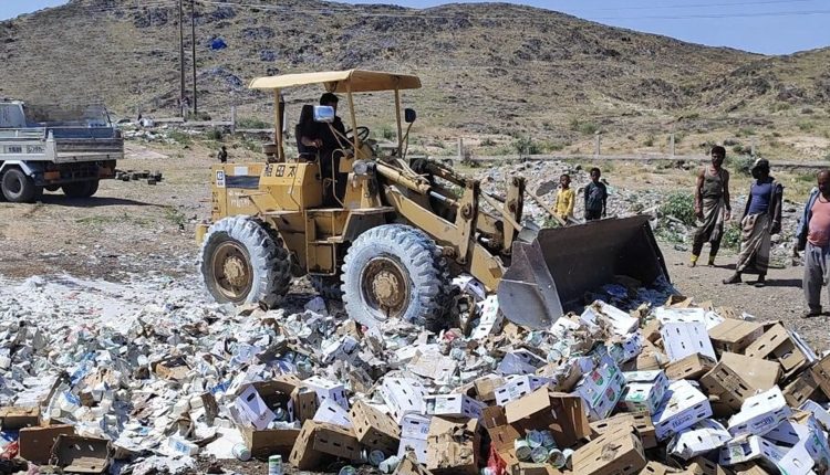 وخلال عملية الاتلاف أوضح مدير مكتب الصناعة أحمد الطاهري أنه تم ضبط هذه المواد الغذائية والألبان المنتهية خلال حملة الرقابة والتفتيش التي نفذها المكتب على مدى شهر.