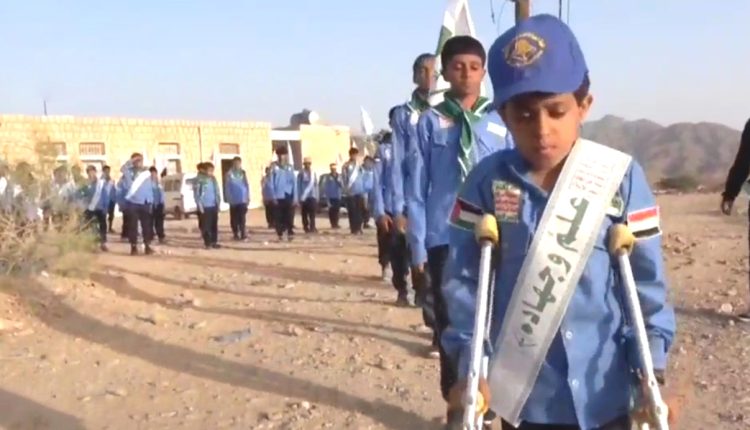 مسير لطلاب مدرسة السيد القائد الصيفية في مديرية صرواح بمأرب تضامناً مع الشعب الفلسطيني