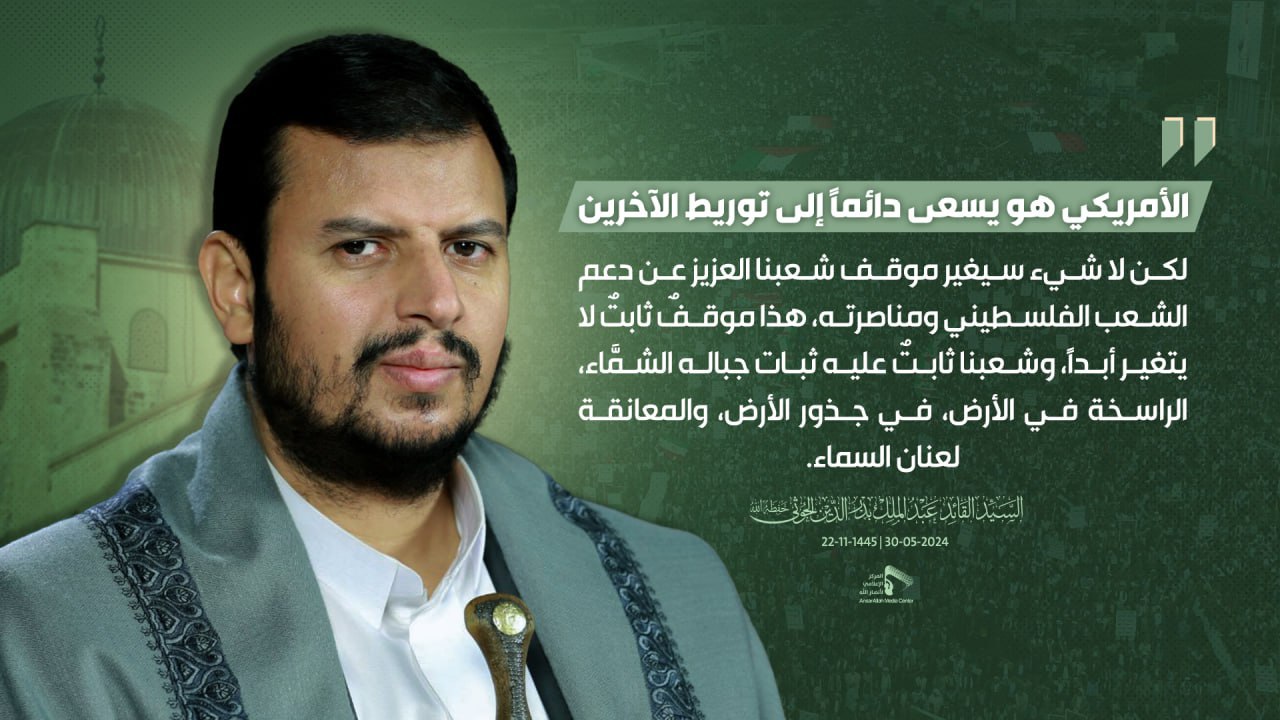 صور الأمريكي يسعى دائماً إلى توريط الآخرين لكن لا شيء سيغير موقف شعبنا العزيز عن دعم الشعب الفلسطيني يمانيون/ صور الأمريكي يسعى دائماً إلى توريط الآخرين، لكن لا شيء سيغير موقف شعبنا العزيز عن دعم الشعب الفلسطيني ومناصرته # السيد القائد# الشعب الفلسطيني# الشعب اليمني#العدو الأمريكيالعدو الصهيوني Share