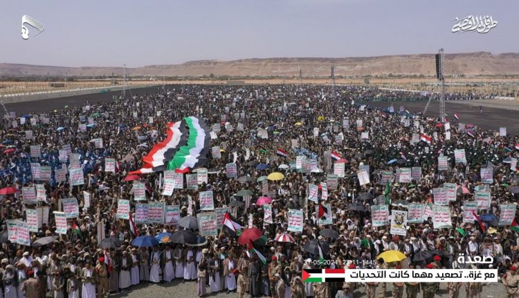 خرجت في محافظة صعدة اليوم 21 مسيرة حاشدة في مركز المحافظة والمديريات تحت عنوان “مع غزة.. تصعيد مهما كانت التحديات”.
