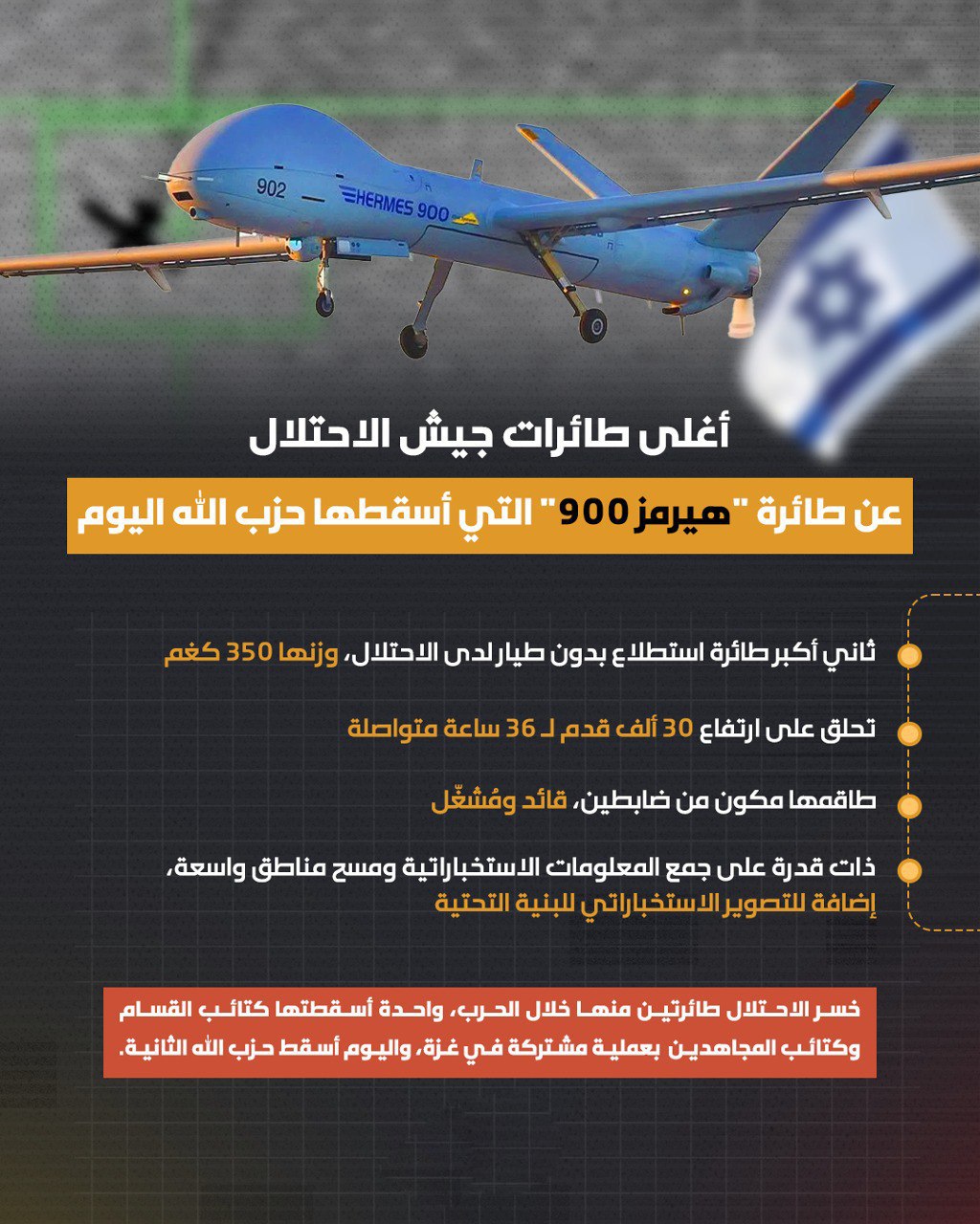 صور من أكبر وأغلى الطائرات المسيّرة لدى الاحتلال.. تفاصيل حول طائرة “هيرمز 900” التي أسقطها حزب الله اليوم (إنفوجرافيك) يمانيون/ صور من أكبر وأغلى الطائرات المسيّرة لدى الاحتلال.. تفاصيل حول طائرة “هيرمز 900” التي أسقطها حزب الله اليوم #طائرة هيرمز 900#طوفان الأقصىً#كيان العدو الصهيونيً#لبنانحزب الله Share