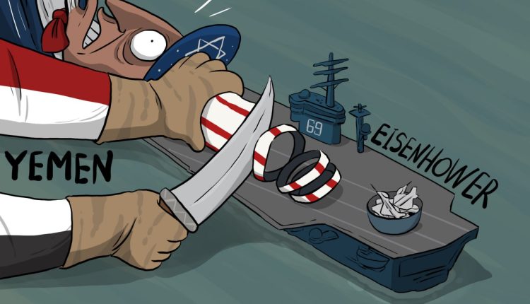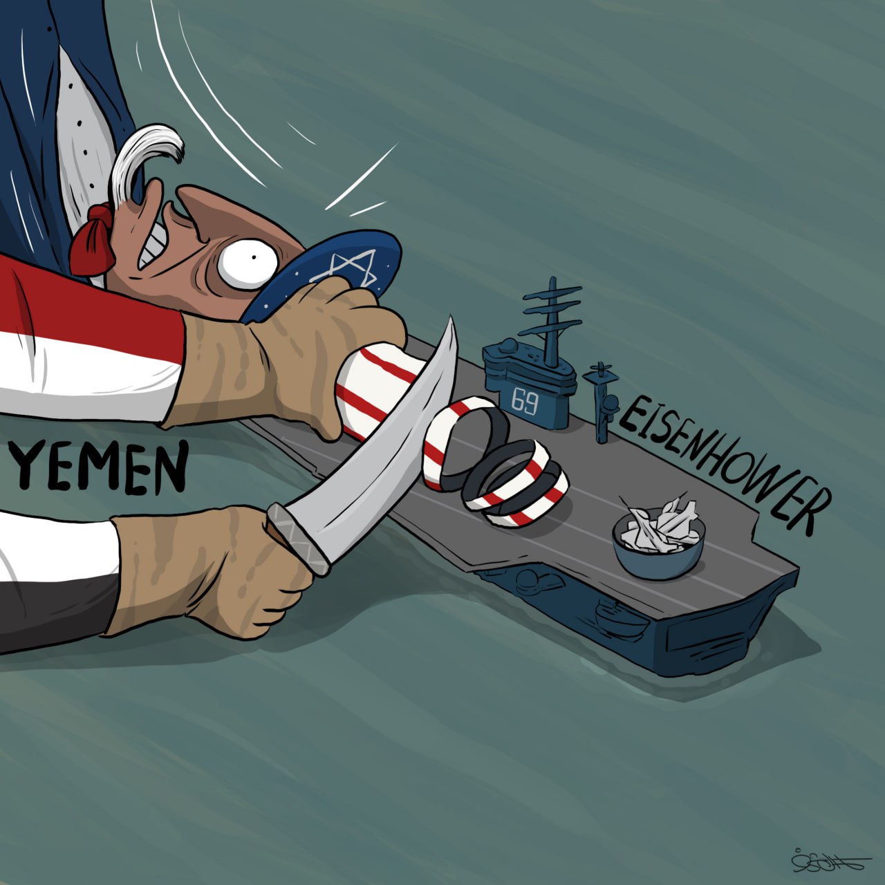 كاريكاتير اليمن يستهدف حاملة الطائرات الأمريكية أيزنهاور يمانيون/ كاريكاتير اليمن يستهدف حاملة الطائرات الأمريكية أيزنهاور # القوات المسلحة اليمنيةُ#أمريكا#العدوان الصهيوني على غزةً#اليمن#طوفان الأقصى Share