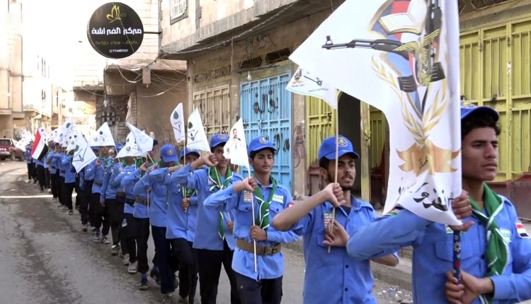 مسير لطلاب الدورات الصيفية في مديرية دمت بالضالع تضامناً مع الشعب الفلسطيني