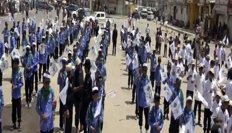 نظمت اللجنة الفرعية للأنشطة والدورات الصيفية بمحافظة البيضاء مسير وعرضاً كشفيا لـ 600 طالب تضامنا مع الشعب الفلسطيني.